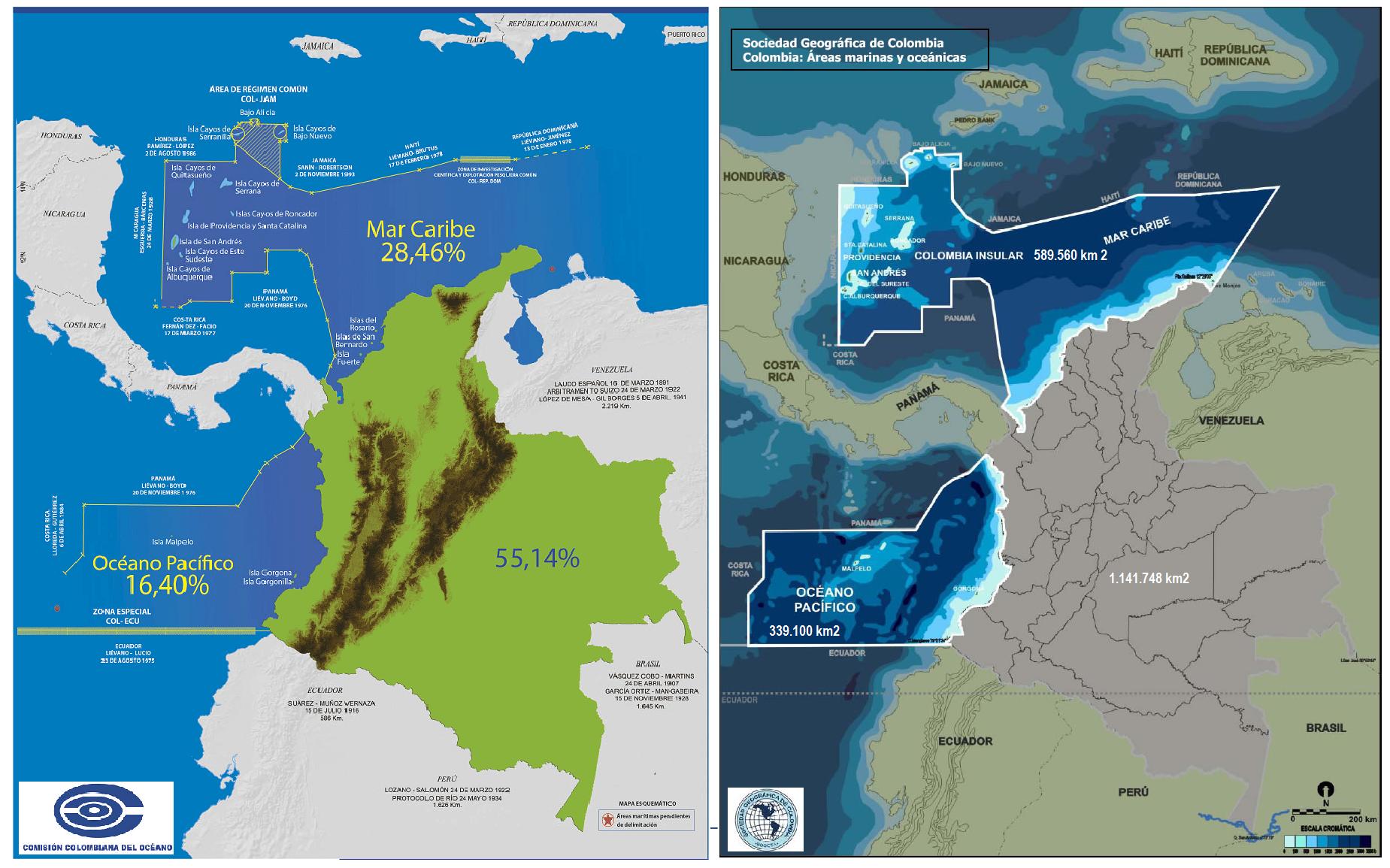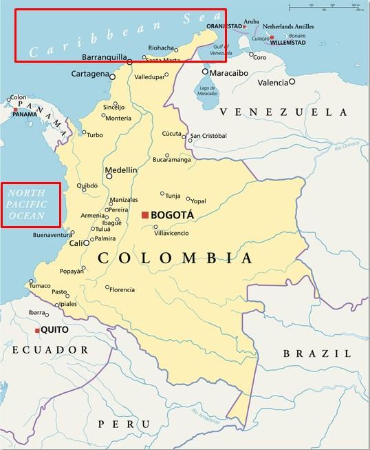 Los mares que limitan Colombia