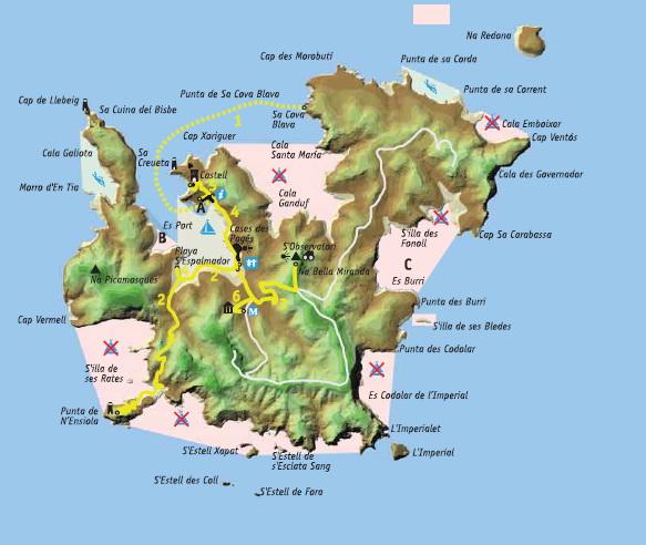 Por último, al sur de Mallorca encontramos ubicada la isla de Cabrera, un pequeño archipiélago que tiene una superficie de 16 km2 y que pertenece al término municipal de Palma de Mallorca. Allí, es posible encontrar uno de los mejores ecosistemas no alterados del Mediterráneo con un increíble fondo marino. Por ello, esta isla y otros pequeños islotes que la conforman fueron declarados Parque Natural Marítimo y Terrestre.