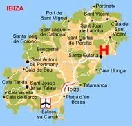La tercera isla del archipiélago balear atendiendo a la extensión es la isla de Ibiza, situada al suroeste de Mallorca y al norte de Formentera, junto a la que forma parte del grupo de las Pitiusas. Cuenta con una superficie de 570 km2 y una población de 134.000 habitantes, aproximadamente. Su capital es Ibiza (Eivissa en catalán) y su territorio se divide en cinco municipios: Ibiza, Santa Eulalia del Río, San José, San Antonio Abad y San Juan Bautista. La isla de Ibiza es un referente nacional e internacional como destino turístico, conocida especialmente por su animada vida nocturna y sus bonitas playas.