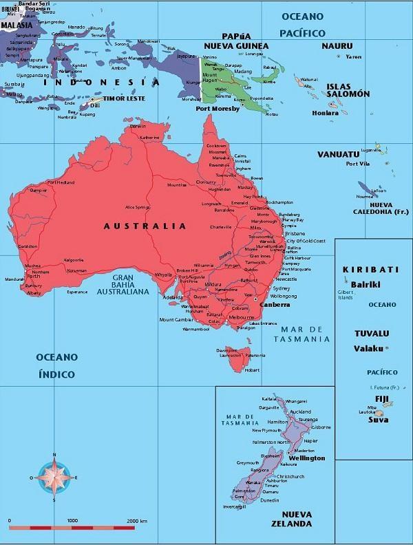 Por último se encuentra Oceanía con 14 países de los 194 del mundo. El país más grande de este continente es Australia mientras que el de menos extensión es Nauru, que además está considerada la isla más pequeña del mundo.