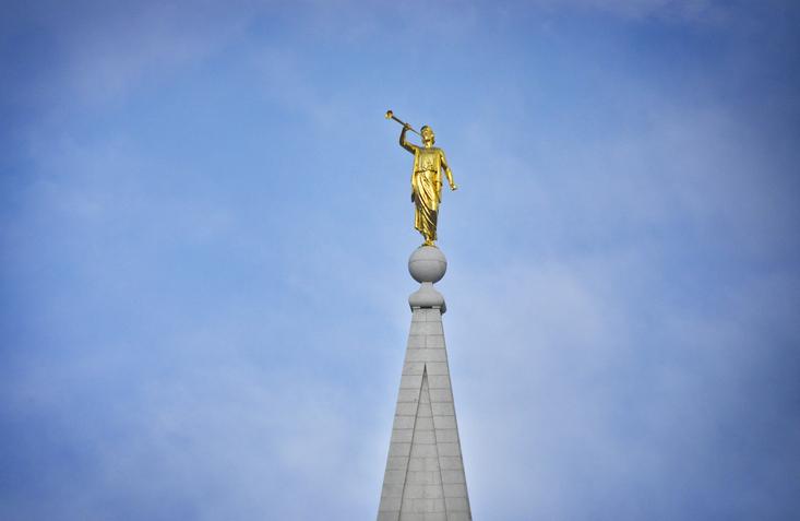 - Al contrario que ocurre con otros cristianos, los mormones no tienen símbolos oficiales, aunque sí que es habitual ver un ángel tocando la trompeta en lo alto de sus templos. Este ángel, según las declaraciones de Joseph Smith, fue el profeta Moroni, quien le guió hasta las ocultas planchas de oro que, posteriormente, se convertirían en el Libro de Mormón.