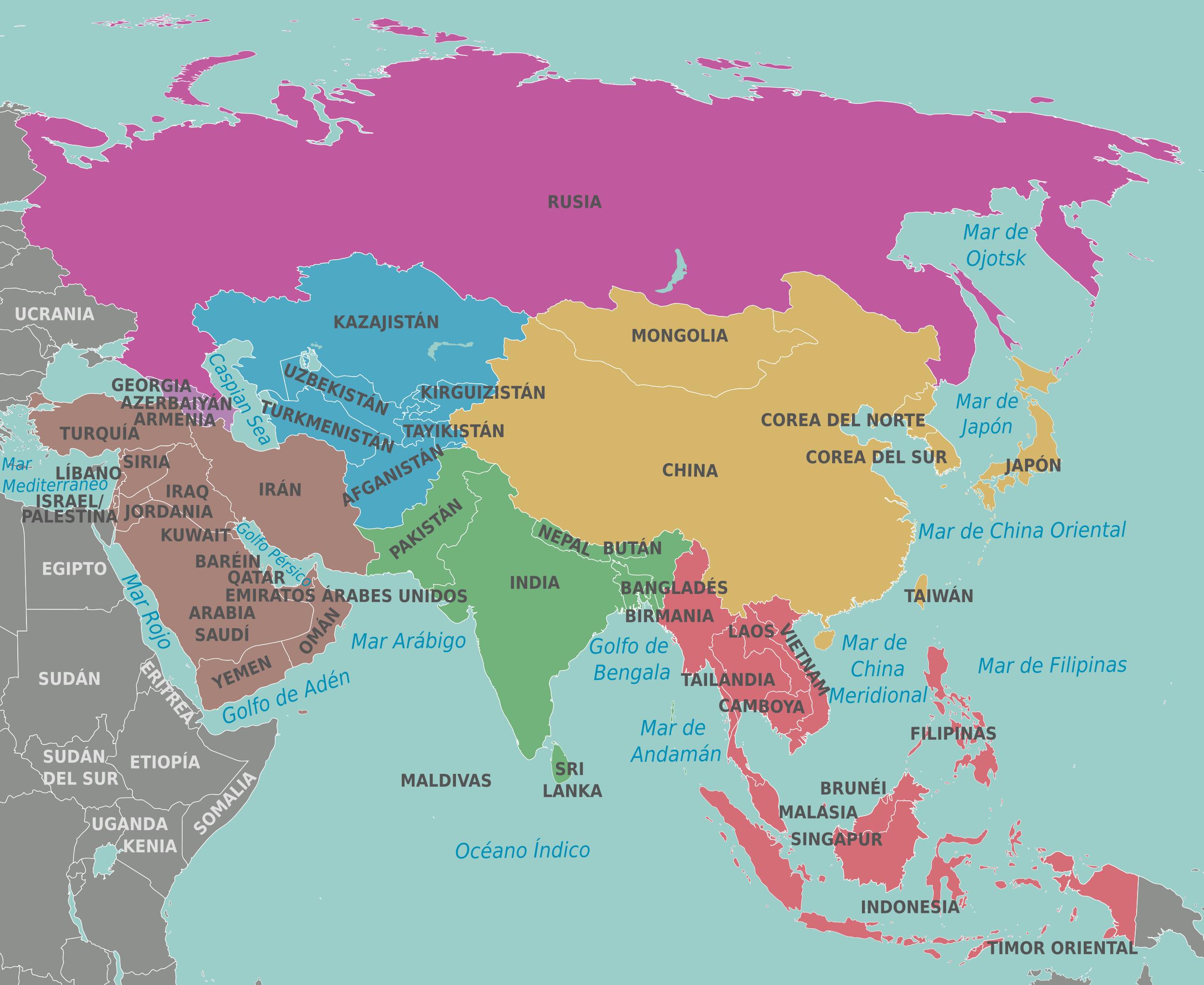 - Asia Oriental: China, Japón, Corea del Sur, Corea del Norte, Mongolia y Taiwán.