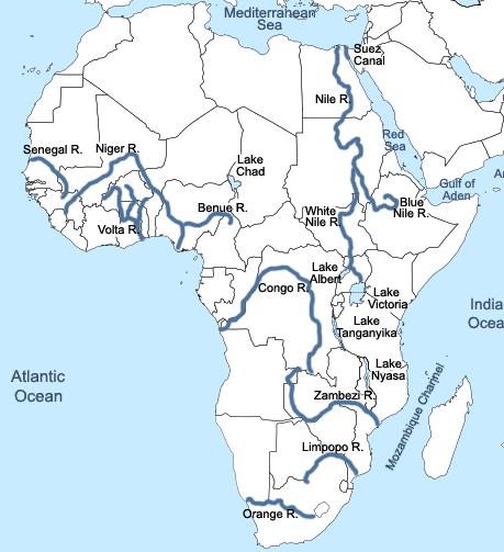 Mapa de los rios de África