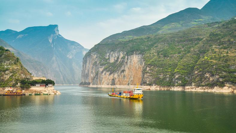 La presa de las Tres Gargantas, una de las que hay a lo largo de su recorrido, es la más grande del mundo. También en este río se encuentra la central hidroeléctrica más grande del planeta. La mayoría de su recorrido es navegable, de hecho, hasta Wuhan pueden navegar buques transatlánticos.