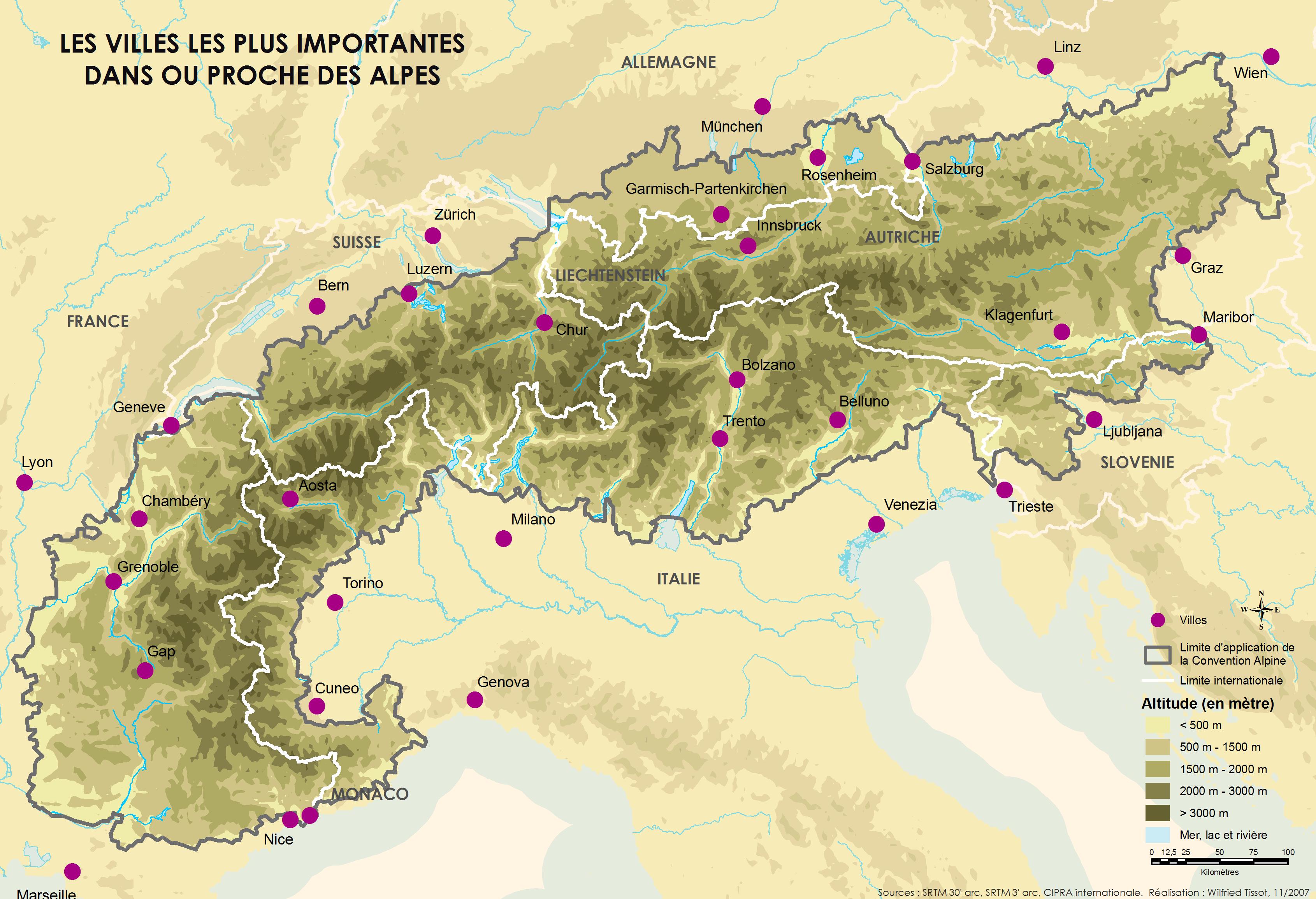 Los Alpes abarcan una gran superficie de Europa central y ocupan un área de más de 200.000 km, con una población de unos 20 millones de personas, aproximadamente. Los países que los Alpes atraviesan son los siguientes: