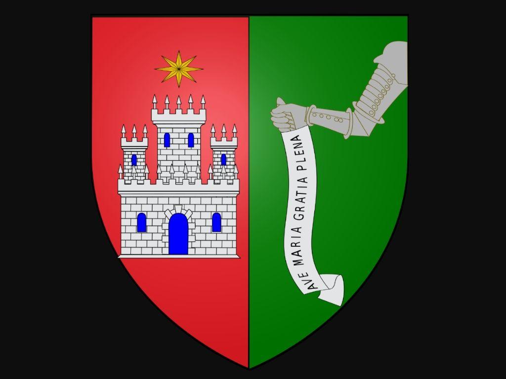 Uno de los escudos más representativos de esta familia es uno partido, donde la primera mitad es un campo de gules (fondo rojo), una torre de plata, y una estrella del mismo metal. En la segunda mitad, en un campo de sinople (fondo verde), un brazo armado sosteniendo la leyenda "Ave María gratia plena".
