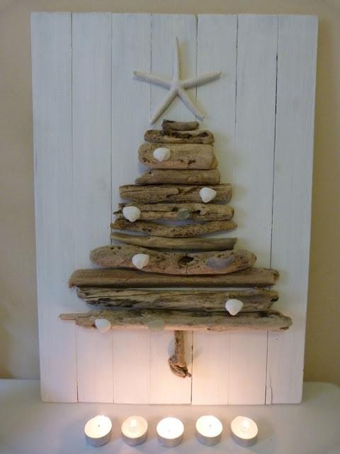 Y siguiendo con las opciones de árboles de Navidad diferentes de madera, ésta es otra excelente alternativa. Se trata simplemente de construir un triángulo con laminas de madera y decorarlo a nuestro gusto. El resultado es simple pero muy hermoso.