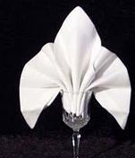 No son formales las servilletas formando pajaritas, flores u otras formas, así como tampoco colocadas dentro de la copa, ya que entonces se manipula mucho la servilleta.