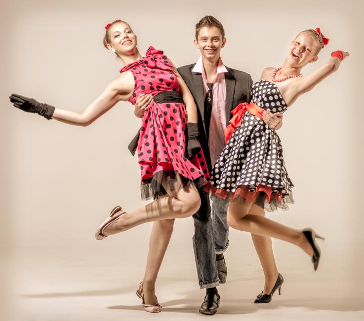 Las chicas de la década también se caracterizan por ser amantes del rock y del swing. Si quieres ser una auténtica shock hop lo mejor es que optes por faldas de estilo poodle con bonitos estampados, como el de topos, combinado con jerséis o camisetas de manga corta y un bonito collar de perlas. Este tipo de vestuario era el más elegido por las chicas de los 50 para acudir a bailes y fiestas. ¿Y para los pies? ¡Unos tenis! Lo más cómodo para moverse a ritmo de rock.