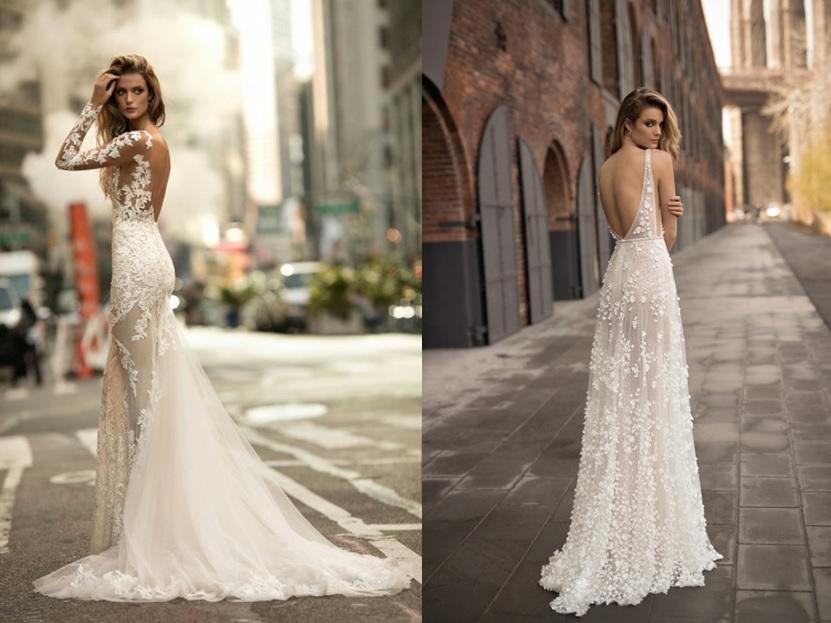 Si deseas casarte por lo civil, pero tener tu vestido largo y blanco, puedes apostar por un modelo de este tipo de vestido de novia, pero con una caída más sencilla, sin cola ni velo, o al menos que no sean muy grandes o llamativos. Una ventaja es que puedes utilizar el escote que prefieras o incluso elegir un modelo abierto en la espalda, como en la imagen de abajo, pues al no ser en la iglesia no es necesario ser tan conservadora.