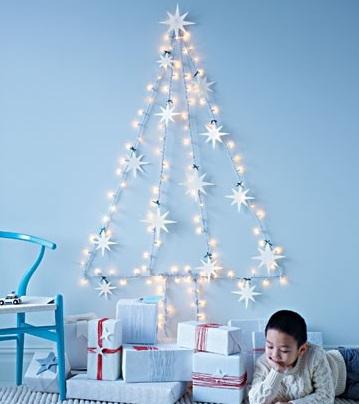 Si además de una casa pequeña no tienes mucho presupuesto para invertir en el árbol, hay formas de ahorrar en la decoración navideña y tener al mismo tiempo un hogar acogedor y muy original. Una buena alternativa es hacer un árbol de pared con luces de Navidad, una idea muy vistosa que además ocupará poco espacio. Esta alternativa puede convertirse en un entretenido plan de decoración para realizar con tu pareja o con los más pequeños de la casa.