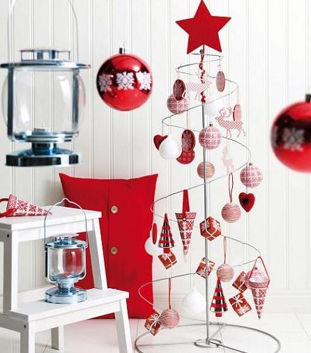 ¿Te encanta el minimalismo? Si piensas que menos es más, ésta alternativa de árbol de Navidad para una casa pequeña de seguro te encantará. Este tipo de bases son fáciles de encontrar en las tiendas de decoración y muebles y apuntan hacia un estilo mucho más moderno, con formas sugerentes de árbol sin ser el clásico modelo, una de las tendencias en decoración para esta Navidad. ¿Te animas a probar?.