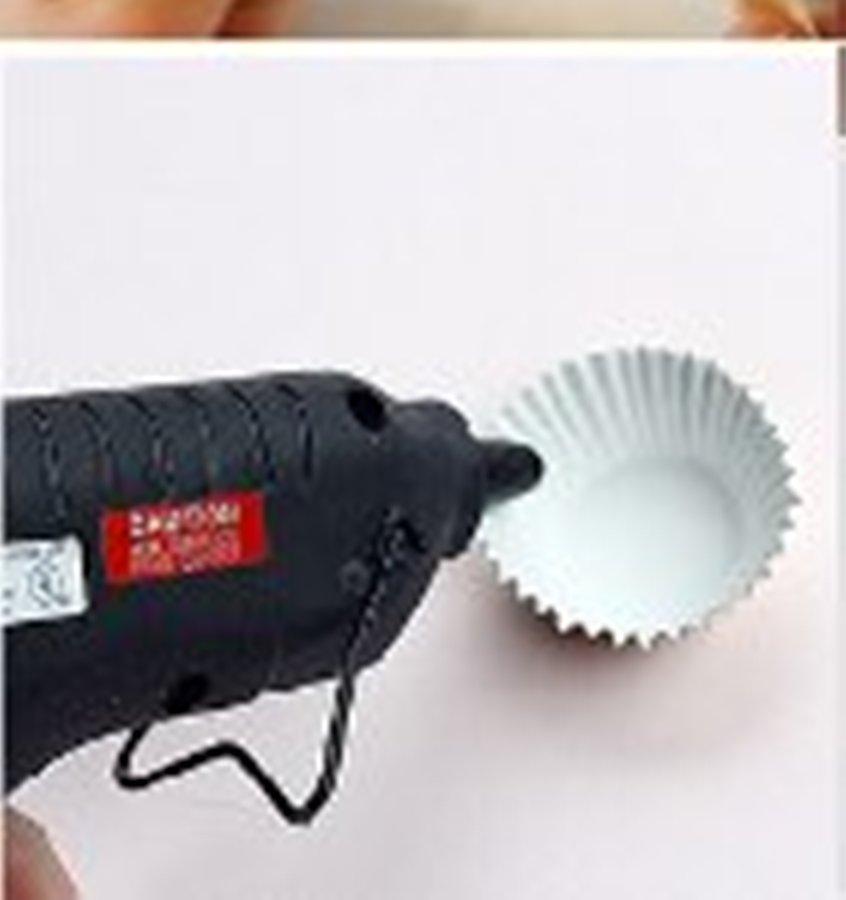 Aplica una pequeña cantidad de pegamento en el centro de los moldes de cup cakes y luego coloca allí la bola.