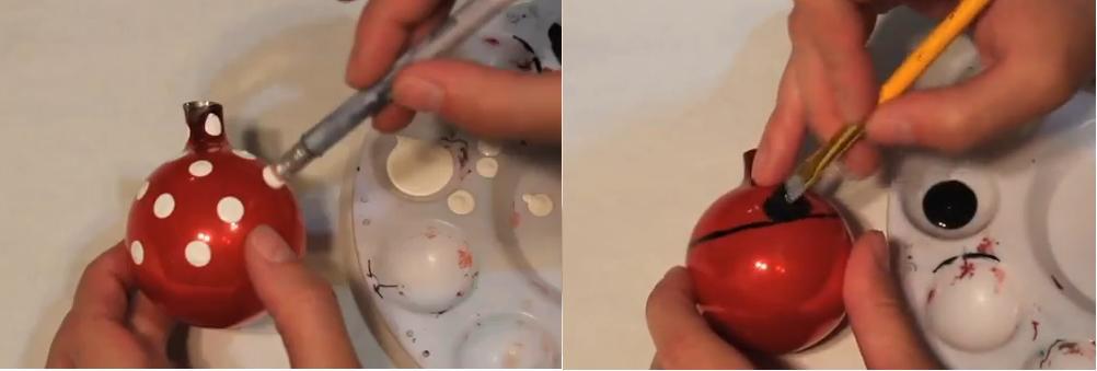 Adornos con bombillas. Utiliza aquellas lámparas o bombillas que se han quemado y ya no te sirven para adornar tu árbol de navidad. Dibuja con un marcador un diseño que te guste y píntalas con acrílicos de colores.