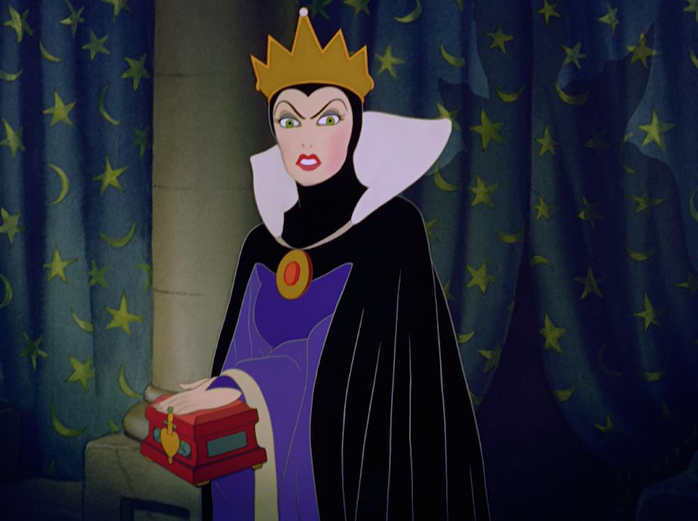 Si recordamos el aspecto de la bruja de Blancanieves, o la malvada reina Grimhilde, vemos que ella vestía con un largo vestido morado, una capa negra con un cuello alto y blanco que asomaba tras su cabeza y con una corona grande y dorada. Además, una de las imágenes más impactantes de la película es cuando la reina sostiene el cofre con el supuesto corazón de Blancanieves en él. Por este motivo, a tu disfraz de bruja de Blancanieves no puede le faltar una pequeña caja o cofre.