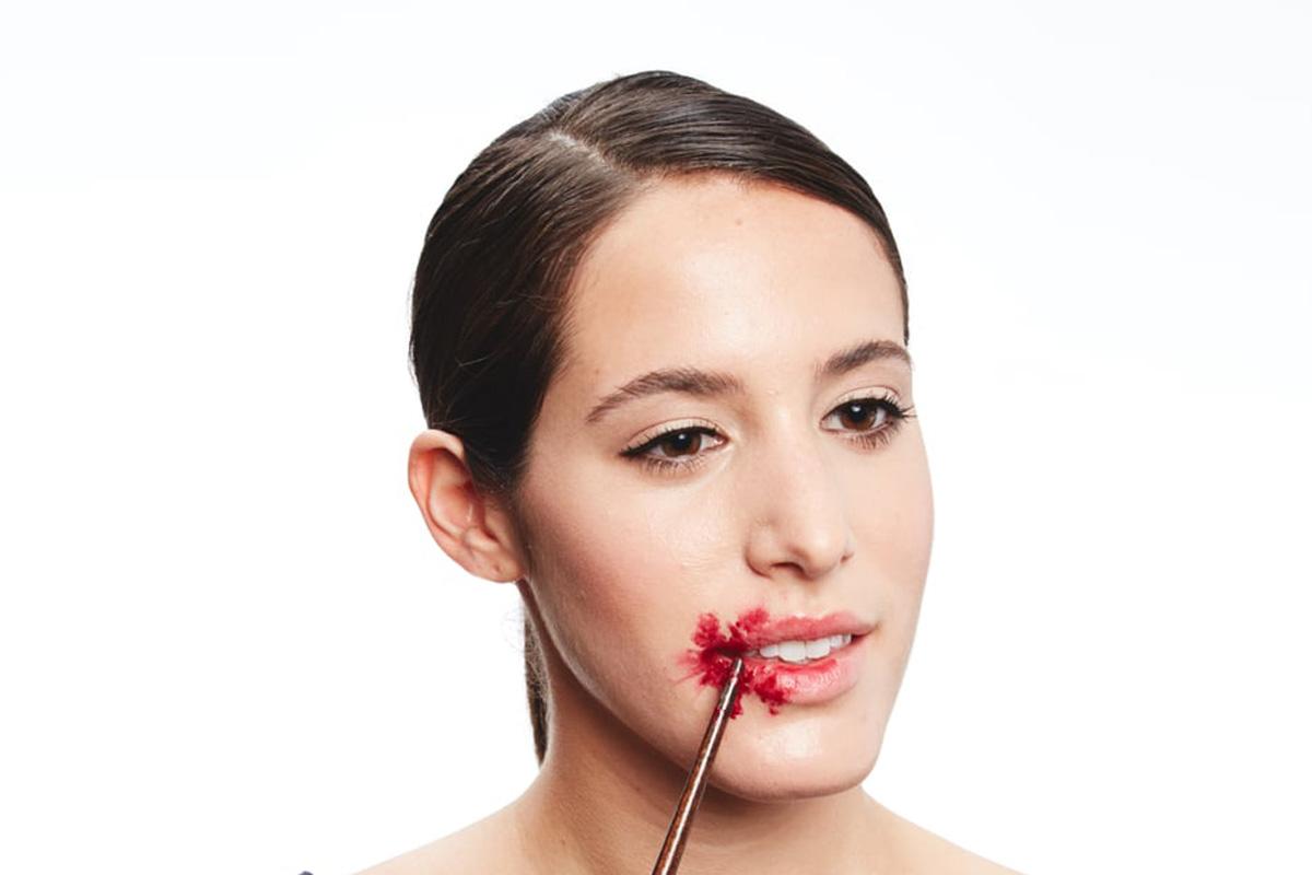 Si no quieres hacer sangre comestible y tienes prisa, no hay nada más fácil y rápido que elaborar sangre falsa con un labial líquido. Este truco es especialmente bueno para un disfraz de zombie o vampiro, ya que podrás hacer la sangre alrededor de la boca de forma muy sencilla.