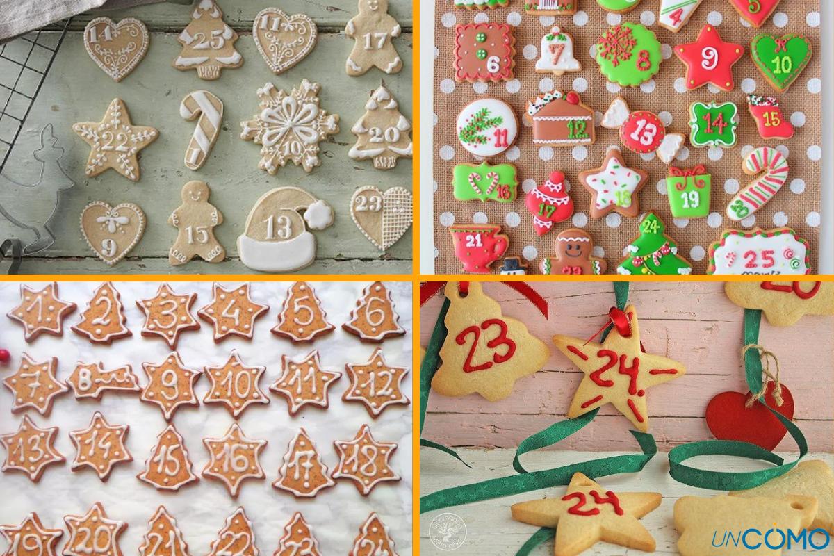 Otra versión de calendarios de Adviento originales es un calendario de Adviento con galletas. Puedes elaborar las galletas y enumerarlas con un glaseado, así que la cuenta atrás será la mar de dulce si cada día te comes una de las cookies. Además, puedes moldearlas con motivos navideños como arbolitos, estrellas o copos de nieve, para que todavía esté más ambientado. Luego puedes disponerlas de manera que queden bonitas, ya sea en una cajita como colgadas en un gran órdago de Navidad. Es una idea sencilla pero muy llamativa.