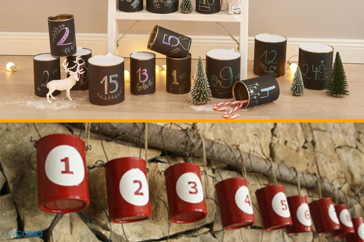 Otra opción económica y original para preparar un calendario de Adviento casero es hacerlo mediante latas. ¿El resultado? Un calendario vintage y llamativo que prepararás en muy poco tiempo. Tan solo deberás reunir 24 latas viejas que tengas por casa, retirar los papeles que las envuelven y lavarlas. Después, en cada una de ellas deberás pintar cada número e introducir una sorpresa dentro de cada lata. Para cerrarlas, puedes utilizar un trozo de tela o de papel de periódico que deberás atar con un cordel. Y, por último, una vez las tengas listas, podrás amontonarlas formando un bonito árbol de Navidad. Además, podrás pintar las latas con motivos navideños o forrarlas para que queden más vistosas. La originalidad la pones tú. ¡Imaginación al poder!