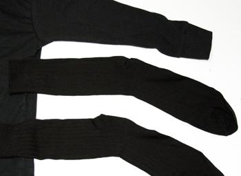 Como sabes las arañas tienen ocho patas y para crearlas en tu disfraz, utilizaremos tres pares de medias de mujer que sean negras y opacas, pues nuestros brazos simularán las dos patas que faltan. También puedes usar calcetines largos y resistentes. Primero, deberás rellenar bien cada una de las medias con algodón, bolsas, tela, etc. para que cojan forma, volumen y queden abultadas.