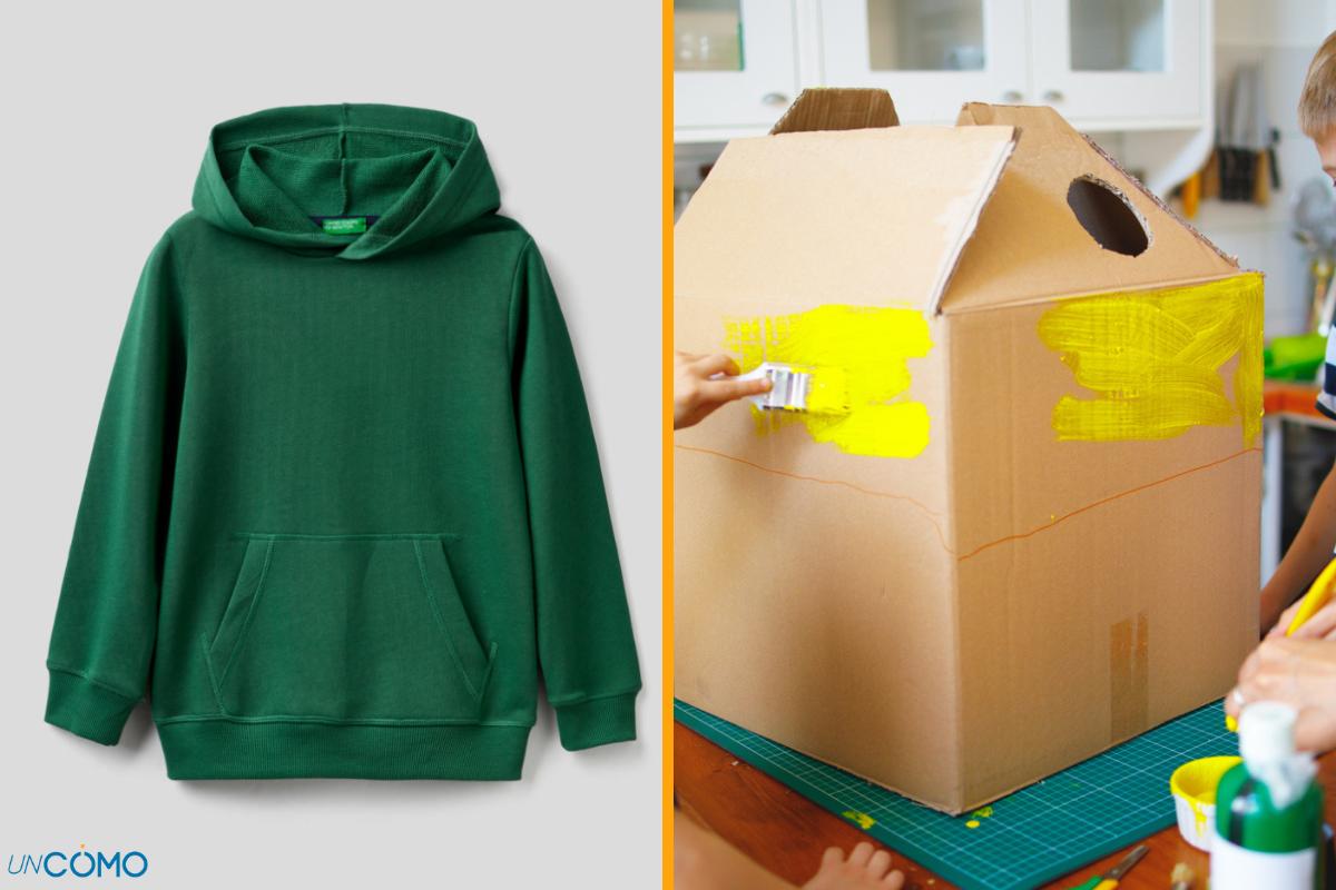 Si te resulta más sencillo también puedes hacer los dientes y los ojos en cartulina y si tu sudadera no lleva capucha puedes dar forma a la cabeza con un gorro amplio o con una capa superpuesta, que sí la lleve, y que sea del mismo color que el resto de la ropa.