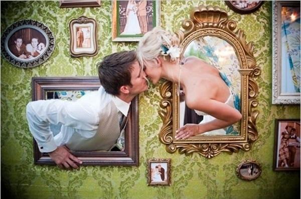Photocall con marcos de fotos. Esta es una de las opciones más divertidas que puedes elegir para un photocall que no requiera de demasiada organización o preparación. Solo tenéis que coger unos cuantos marcos grandes de fotografías del estilo que más os guste para que tanto vosotros como todos los invitados os podáis sacar instantáneas muy divertidas. Podéis colgar los marcos en árboles si se trata de una boda campestre o crear un photocall con una tela y dejar que los invitados escojan el marco que más les guste para fotografiarse.