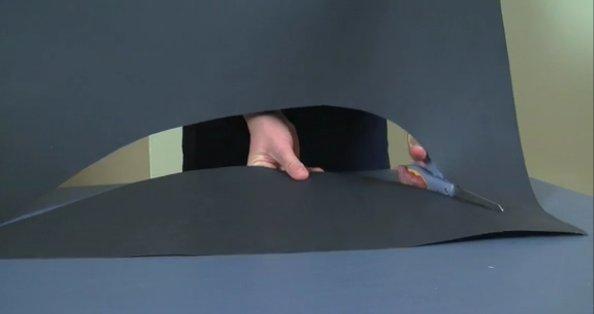 A continuación, dibuja un círculo más grande. El centro es el mismo para los dos círculos. Esto se convertirá en el borde exterior del ala del sombrero. Su tamaño dependerá de tus gustos y que experimentes un poco. Recorta el círculo más grande y luego corta su interior donde está el círculo pequeño; debe quedar como un neumático cuando se corta correctamente.