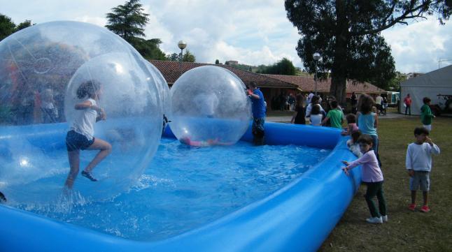 Los niños se lo pasan en grande con este juego y de paso se refrescan un poco. También puedes poner algunos peces en la piscina pequeños y que los niños tengan que cogerlos con cañas de red y luego los vuelvan a tirar al agua. Así se divierten pescando y además aprenden a cuidar a los animales.