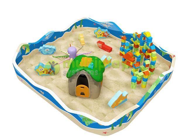 Si puedes conseguir un poco de arena para simular una pequeña zona costera perfecto. La pones cerca del agua y lo llenas de juguetes como cubos, palas, moldes... con los que los niños puedan distraerse y divertirse.