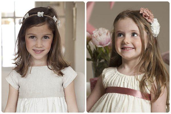 La diadema es una apuesta segura, sobre todo si a tu niña no le gusta llevar el pelo recogido o con muchas florituras. Sencilla y divina. En cualquier tienda encontrarás multitud de diademas: con flores, estilo corona, cintas… Cualquier opción es válida. Peina a la pequeña con la raya al lado, hazle una coleta y corónala con la diadema o una tiara o simplemente retira el pelo de su cara con la cinta. Un peinado sencillo y con mucho estilo que dará un look angelical a tu niña.