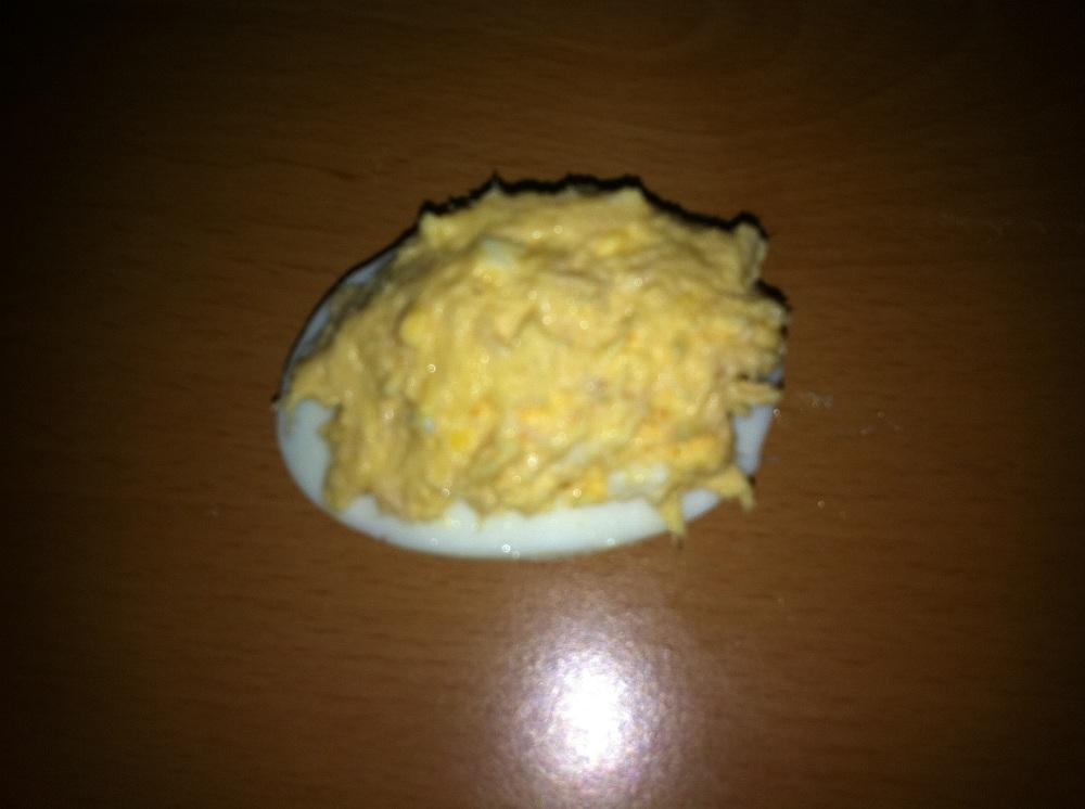 Coloca la araña encima del huevo y habrás conseguido preparar unos huevos rellenos de arañas que horrorizarán a tus invitados.