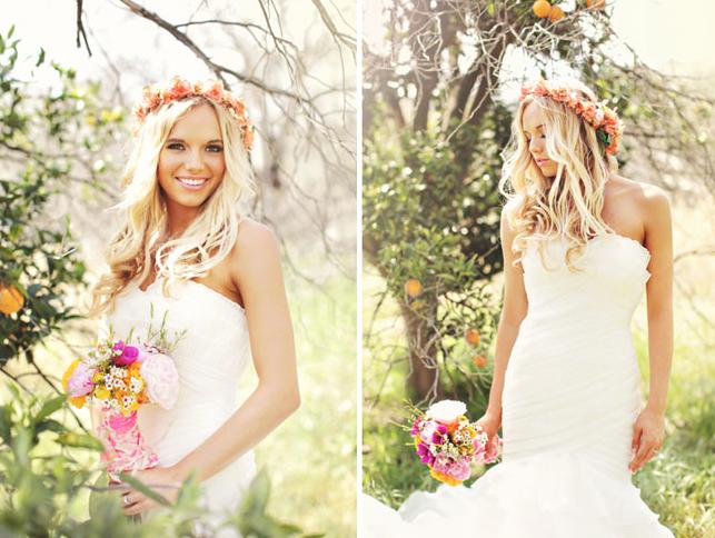 Las novias que quieran celebrar una boda hippie pueden elegir un vestido sexy: con escote palabra de honor por ejemplo, y darle el toque hippie a su look en el peinado. En ese caso, déjate el pelo suelto y adórnalo con flores.