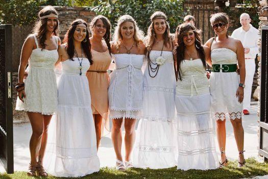 Para asistir a una boda hippie, apuesta por el blanco. No fallarás. Elige un vestido corto o largo, según tus gustos y aquí puedes permitirte elegir tejidos más naturales y suaves, como el lino o el algodón. No olvides incluir en tu look algún complemento floral que te dé el toque hippie que necesitas.