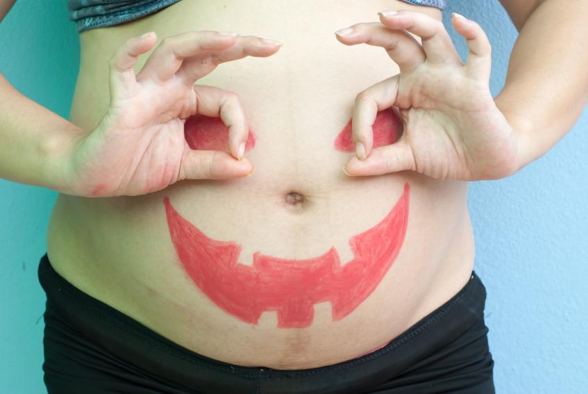 Este es solo un ejemplo de lo que puedes hacer pues, puedes darle un toque más siniestro y hacer que el bebé sea un zombie o que tengas gotas de sangre por la barriga, como si estuviera saliendo a la fuerza. ¡Tú misma!
