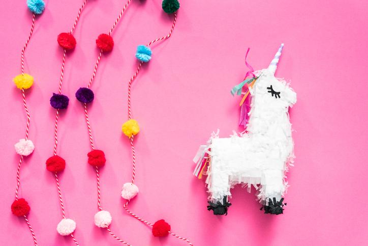 - Piñata de unicornio: aunque técnicamente no sea un juego, sí que es algo muy divertido para los niños, sobre todo cuando están esperando a que el cumpleañero o cumpleañera rompa la piñata y caigan todos los regalos. Si encontráis una piñata que tenga forma de unicornio, sorprenderéis a grandes y pequeños.