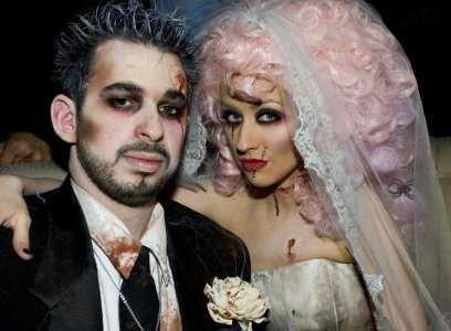 ¿En casa hay un viejo traje de novia y no sabes qué hacer con él? Pues entre los disfraces de parejas para Halloween puedes encontrar aquí una gran solución si se animan a vestirse de novios cadáveres o fantasmas. Un disfraz divertido que los convertirá en el centro de atracción de la fiesta. Para inspirarte puedes usar imágenes de la película de Tim Burton llamada Corpse Bride o La novia Cadáver o usar tu creatividad, como Christina Aguilera y su pareja en esta imagen.