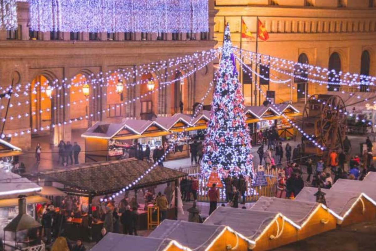 El mercadillo navideño de la Plaza del Pilar en la ciudad de Zaragoza tiene una antigüedad de más de una década. Cuenta con más de 40 casetas, una noria, un tiovivo ecológico y ponys fabricados con madera para pasear. También tiene un árbol de Navidad los deseos y, en ocasiones, hasta toboganes con nieve. Además, desde la plaza de la Basílica del Pilar, podrás admirar un Belén enorme con una superficie de 1.000 metros cuadrados.