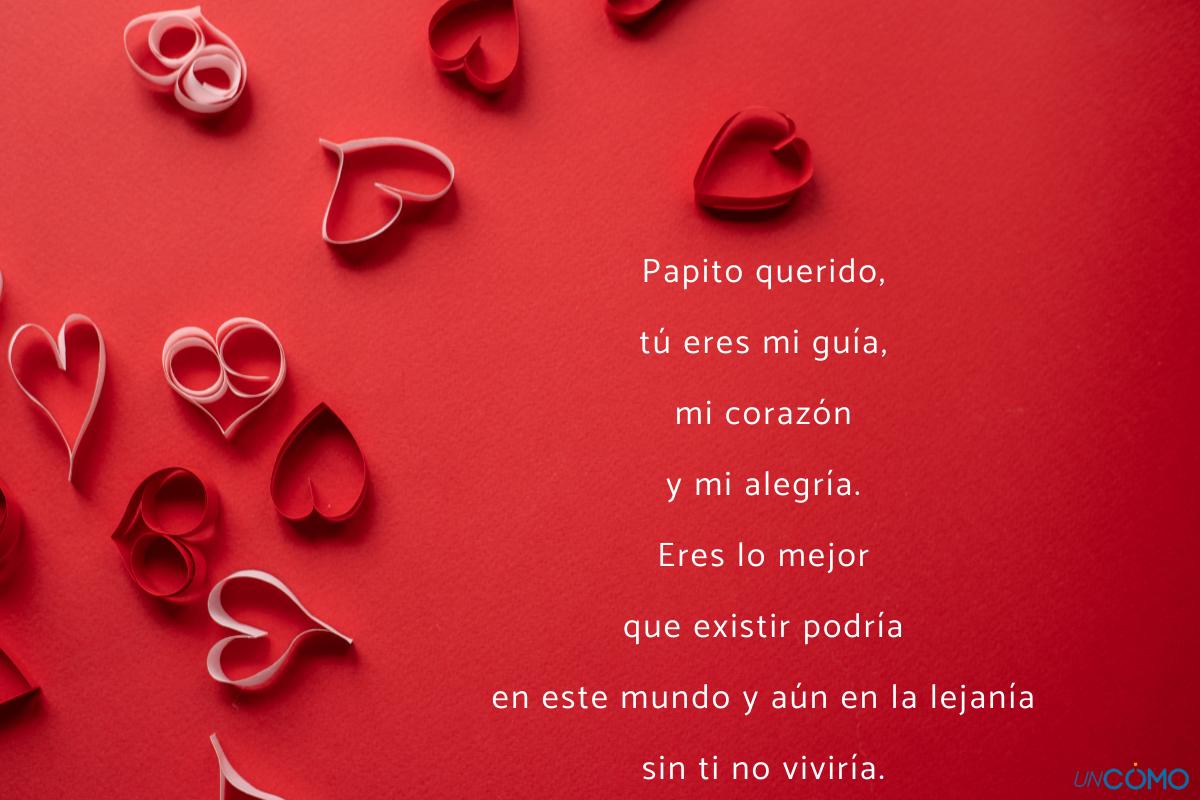 Algunos poemas del Día del Padre son Mi gran héroe, papá, Hoy habla mi corazón, Mi padre, Papito querido, entre otros. ¿Se acerca el Día del Padre o quieres hacerle un escrito especial porque es su cumpleaños y no se te ocurre nada? En unCOMO te proponemos algunas ideas de poemas para el Día del Padre que podrás añadir a tu regalo en la tarjeta de felicitación que le hagas. También podrías enseñarle alguno de estos poemas a tus hijos para que se lo reciten a su padre en este día tan especial. A continuación, te presentamos una serie de poemas para el Día del Padre.