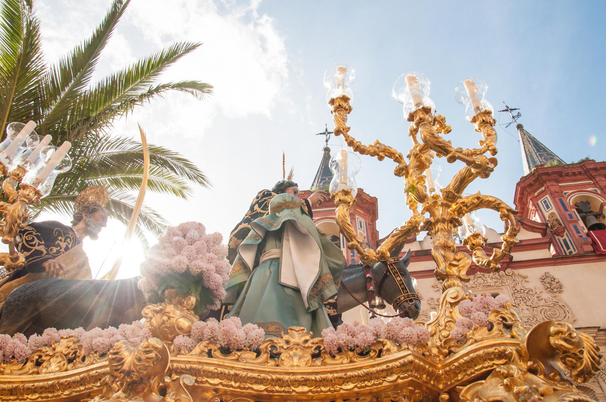 Como ocurre en el resto de localidades de España, el inicio de la Semana Santa arranca en Sevilla el domingo de Ramos. En este día, tiene lugar la bendición de las palmas y ramas de otros árboles en las liturgias que se celebran en las distintas iglesias y también la procesión de La Borriquita recorre las calles de Sevilla para hacer la estación de penitencia en la espléndida catedral sevillana. La procesión conmemora la entrada de Jesús a Jerusalén, que daría paso a la semana de Pasión.