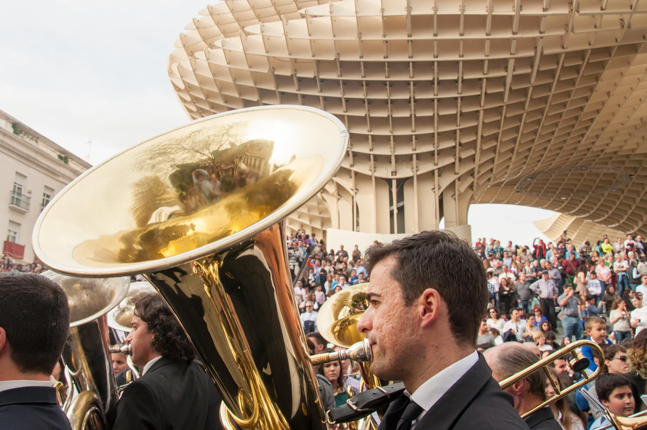 Son otro elemento que hace muy especial la Semana Santa de Sevilla. En estos días, tambores y trompetas anuncian que Jesús o la Virgen están en la calle en procesión y ese sonido, ligado al vaivén de los pasos, despierta múltiples sentimientos.