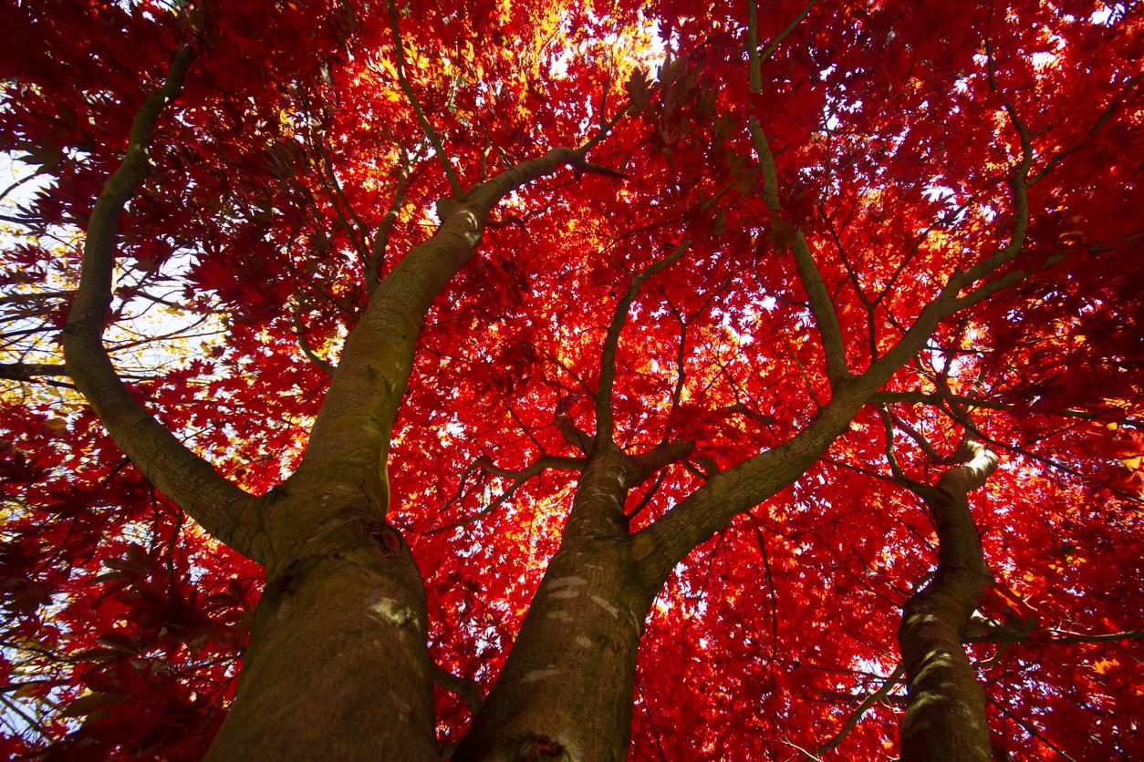 El arce rojo también se encuentra entre los diferentes tipos de árboles de otoño. Sus hojas son caducas y frondosas, alcanza una altura que oscila entre los 20 y los 30 metros y es muy abundante en Norteamérica.