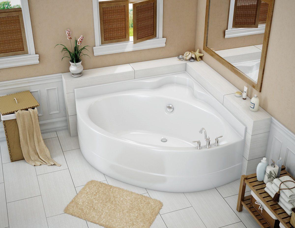 Una bañera triangular para un baño pequeño