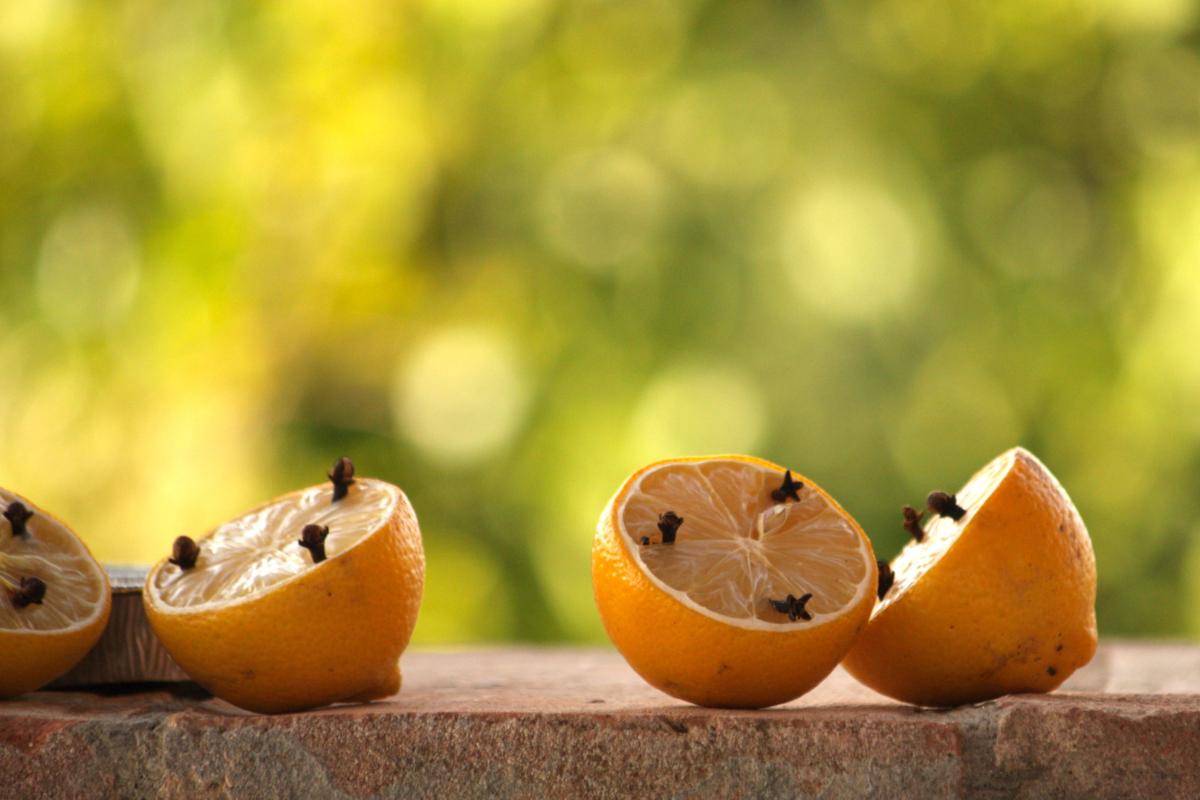 Se toma media rodaja de limón y se insertan en ella unos 5 clavos de olor. Este aroma también alejará a los mosquitos que intenten entrar en casa. Se deben colocar en las ventanas principalmente; además, su aroma es muy refrescante y agradable.