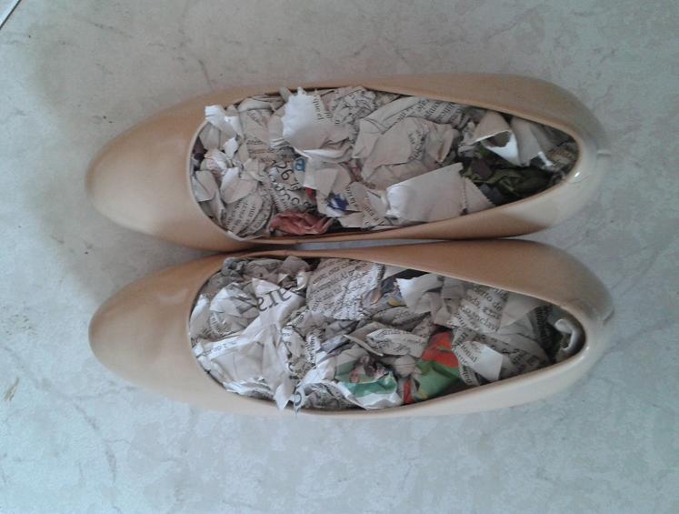 Secar zapatos, después de un día lluvioso o cualquier otro percance. Si se te han mojado los zapatos, pon papel de periódico arrugado en su interior y déjalo toda la noche. Asimismo, puedes usar los periódicos para guardar tus zapatos de una temporada a otra sin que se deformen.