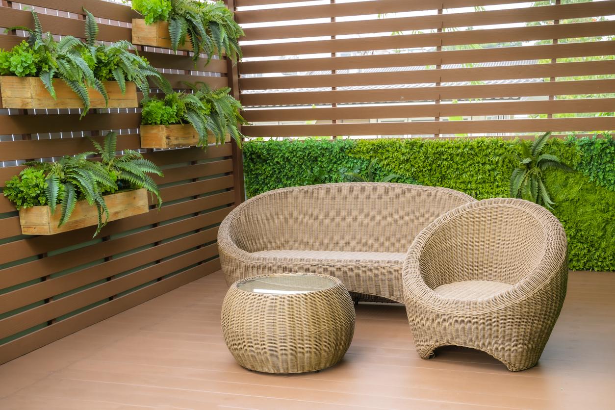 Las vallas de brezo, bambú o mimbre, tanto natural como artificial, son también elementos de ocultación ideales para cerramientos sin obras. Resultan muy acogedoras, ya que dan cierto aspecto de "hogar" a la terraza, aportándole un toque natural.