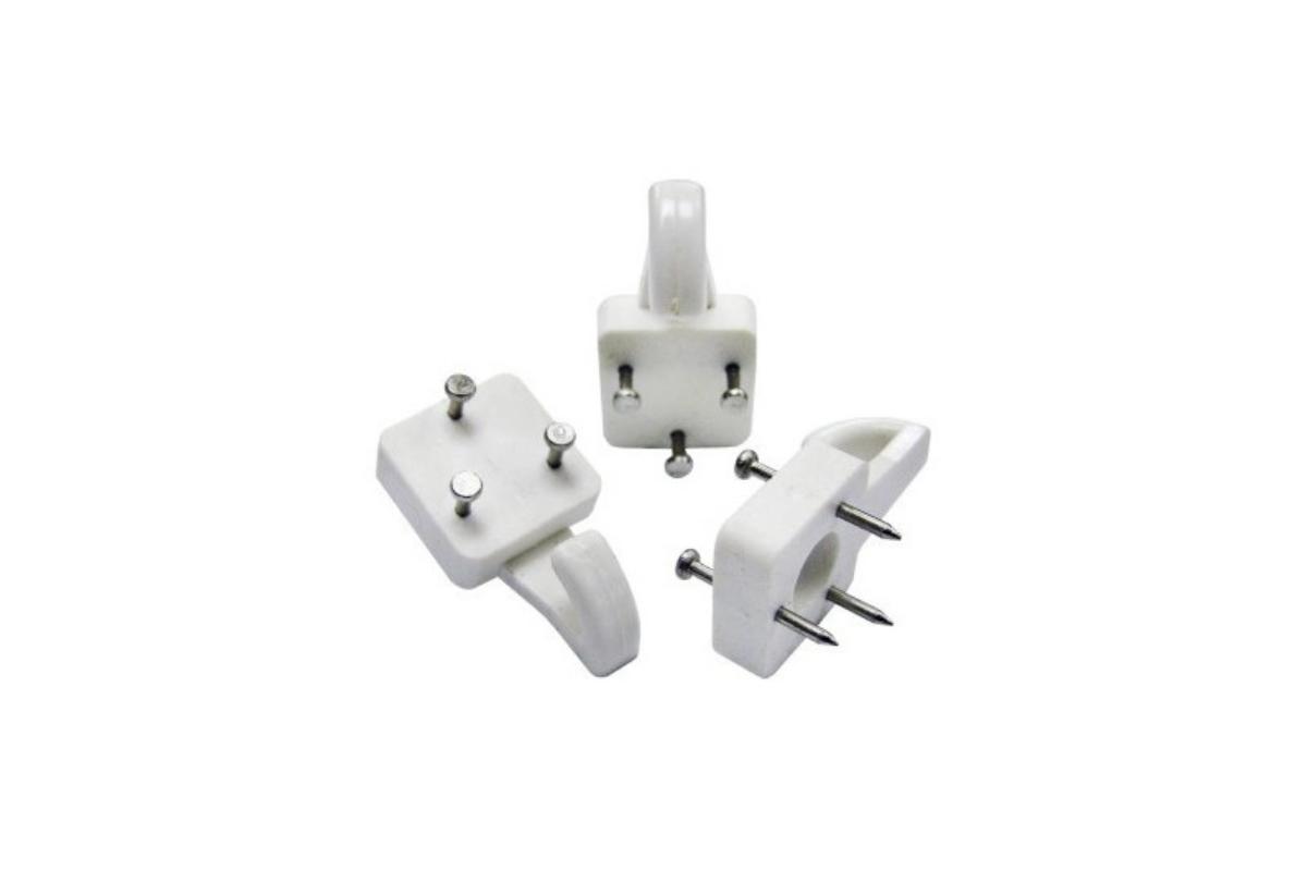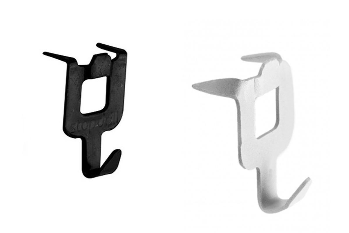Los cuelgafácil son muy parecidos a los anteriores pero más conocidos. Aunque no sirven para superficies más duras como la del ladrillo, también son fáciles de colocar y dejan una marca casi imperceptible al quitarlos. La diferencia está en la forma, un poco más compleja, pero muy útil. Son como pequeñas chinchetas que van sujetas a un enganche de plástico.