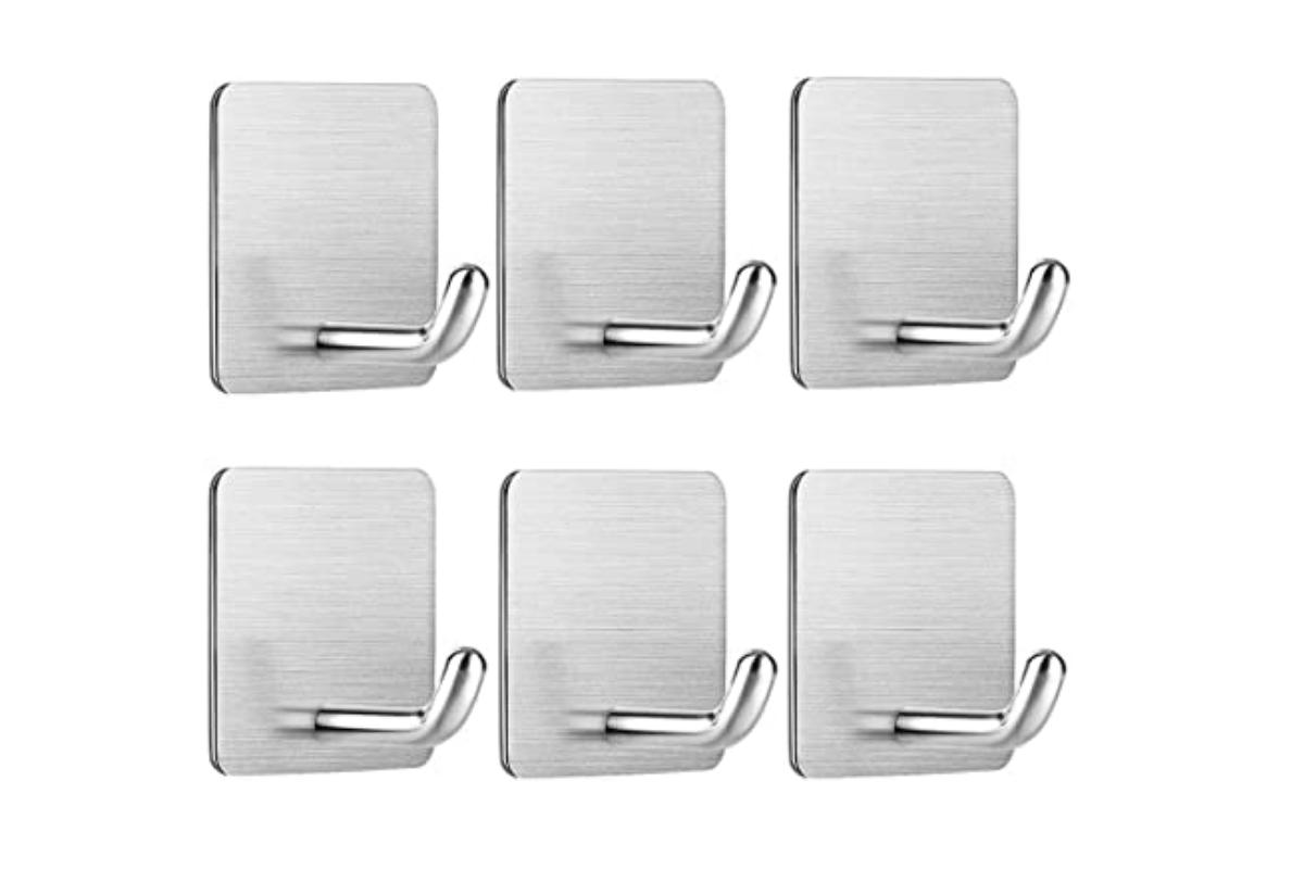 Los ganchos adhesivos son quizás los más conocidos para colgar cuadros sin calvos, pero no por eso menos útiles y resistentes. Es una manera bastante cómoda de colocar un cuadro de hasta 4 kilos, que realmente no es poco peso. Aunque no es tanto como el que pueden soportar otras opciones, es la más fácil y económica para decorar con detalles sencillos cualquier espacio, así como también para colgar perchas para collares o toallas de cara.