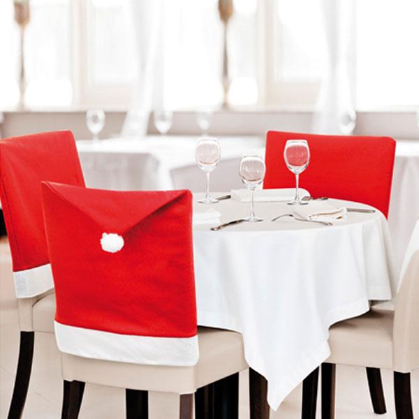 Una opción que seguro encanta tanto a adultos como pequeños es decorar las sillas con el tradicional gorro de Santa Claus, protagonista indiscutible de la época navideña. Se trata de una decoración sencilla que podemos confeccionar de manera sencilla en casa con un poco de tela roja y blanca. No olvides añadir un pompón blanco en la parte superior del gorro para que sea más auténtico y original.