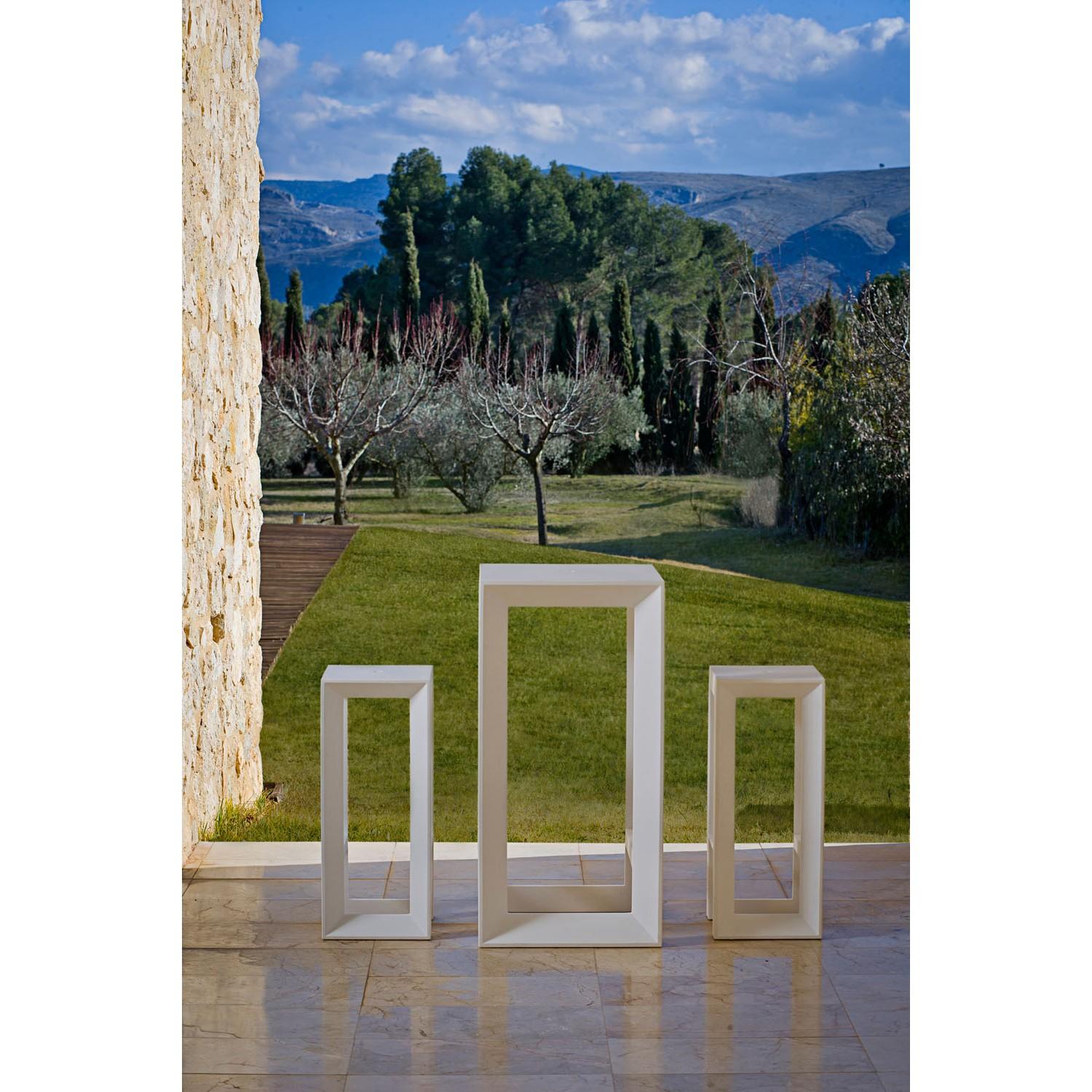 Nos gusta la mesa Bandoline de Viteo Outdoors. Es moderna, elegante y sofisticada. De aspecto ligero, ideal para contrarrestar el calor y crear una sensación más fresca.