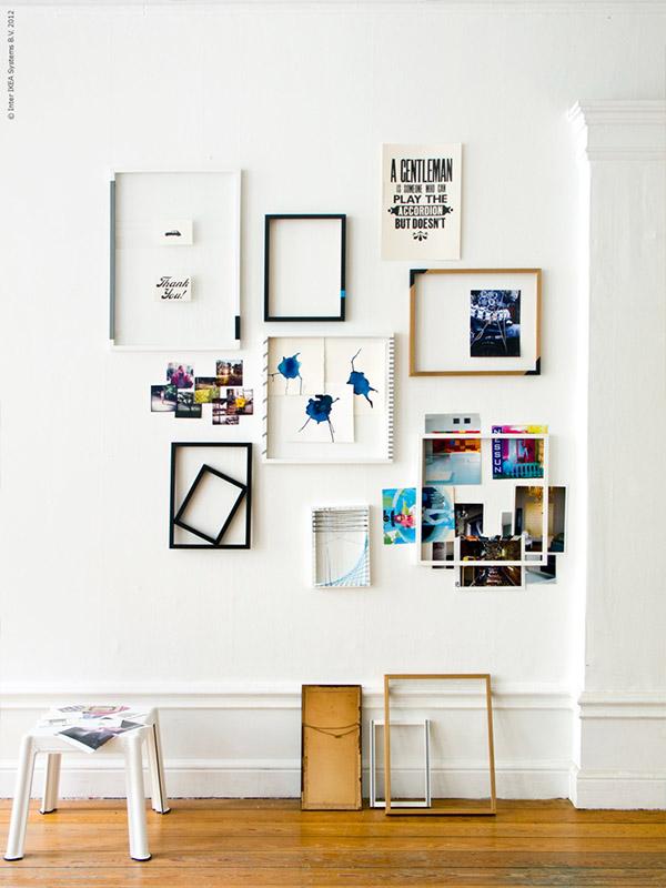 ¿Tienes un montón de marcos de fotos por casa que no usas? Suele ser un típico regalo y, al final, si no te gusta especialmente usarlos para exhibir fotografías personales, te proponemos usarlos para decorar una pared. Coge cada marco, vacía el interior, quita incluso el cristal si lo tiene y, entonces, crea una composición en la pared jugando con los colores y las formas. Puedes dejarlos sin fondo, poner en el centro recortes de imágenes evocadoras e incluso escribir citas motivadoras. Intenta combinar marcos de diferentes estilos, formatos y tonalidades para que crear un mosaico en tu pared.