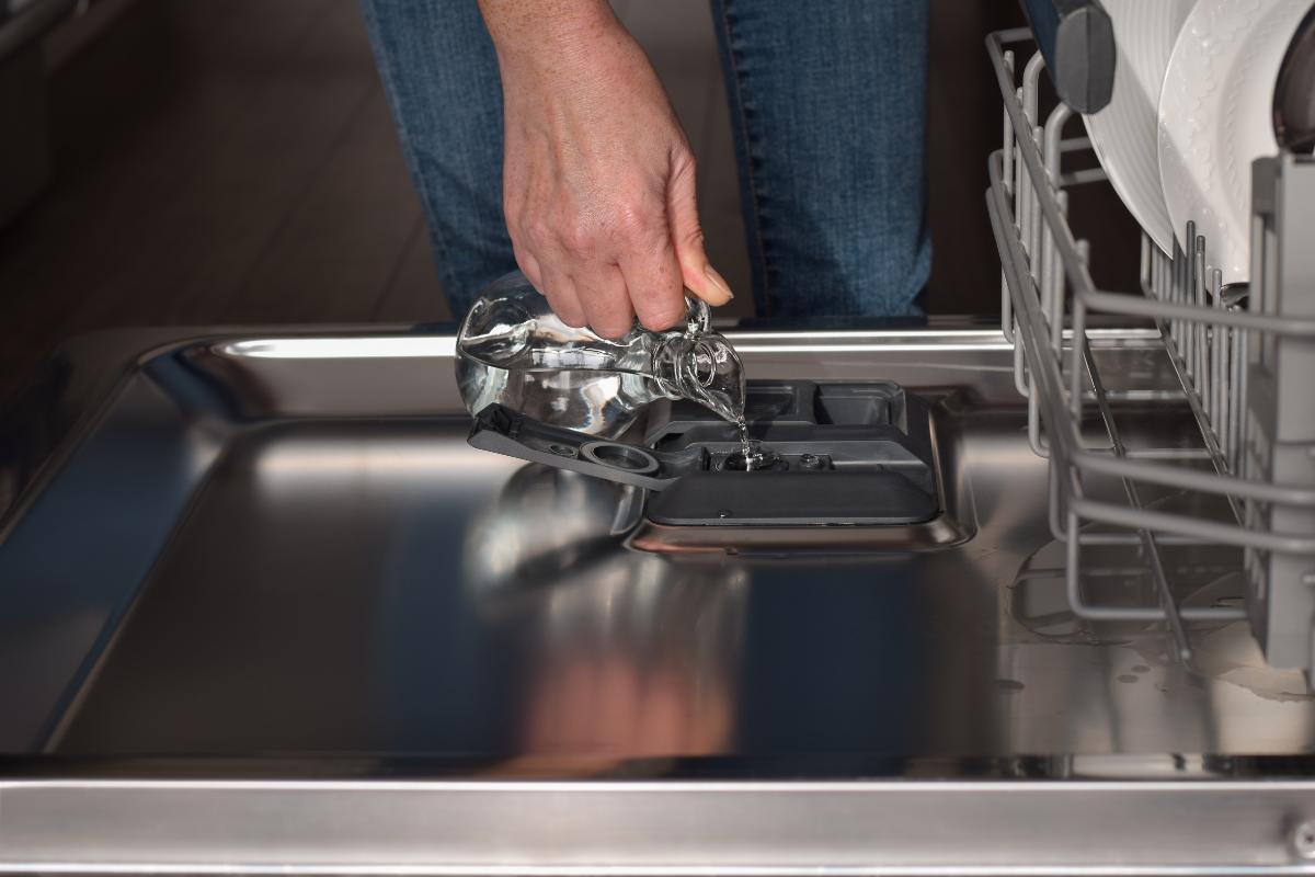 Dejar que el lavavajillas funcione al vacío y aplicar vinagre
